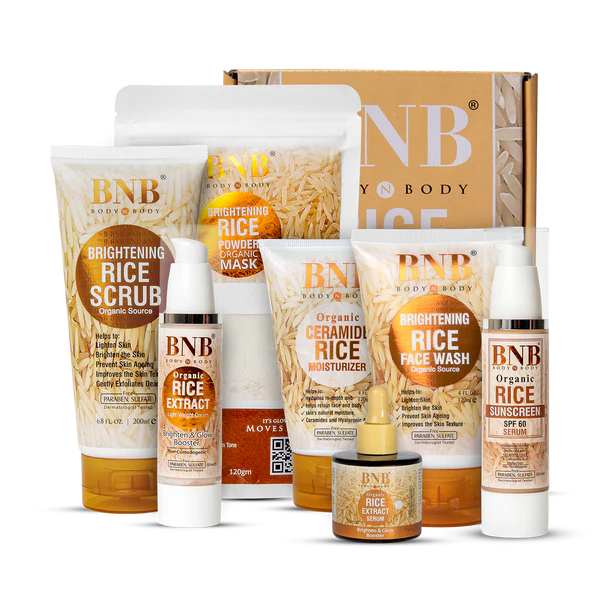 Indulge in our comprehensive skincare bundle, featuring a nourishing rice serum for deep hydration, a refreshing facewash to cleanse and purify, a gentle face scrub for exfoliation, a protective sunscreen for daily defense, and a rejuvenating rice face mask for a spa-like experience. Elevate your skincare routine with this harmonious combination for a radiant and healthy glow.